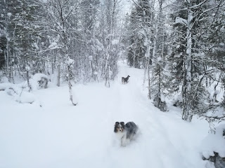 Alle 2km kuljettiin ja olihan pettymys. No, möksälle huilaamaan hetkeksi ja päätös lähteä uudestaan vain Hukan kanssa poluille. Ei muutakuin mars takakaisin ulos.